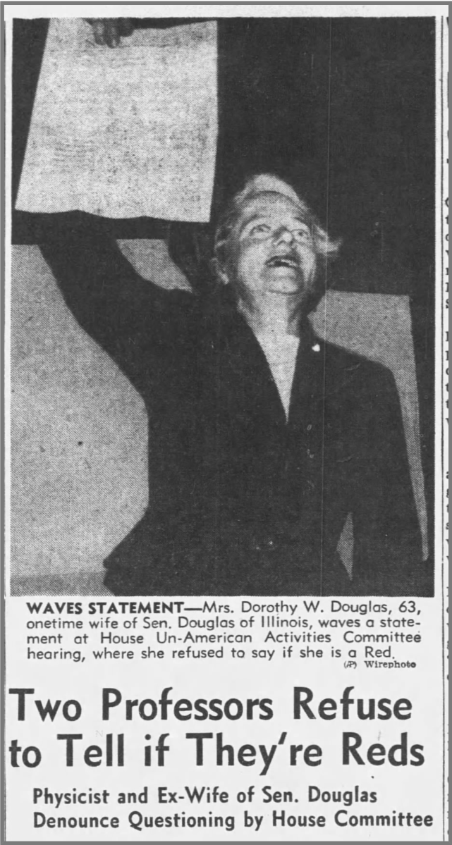 Dorothy Wolff, Douglas, 1953 Published January 23, 2019 at 2836 × 5306 Dorothy Wolff Douglas on the steps of the Capitol brandishing a prepared statement she was denied permission to read during her appearance before HUAC in March 1953, Los Angeles Times, March 14, 1953.